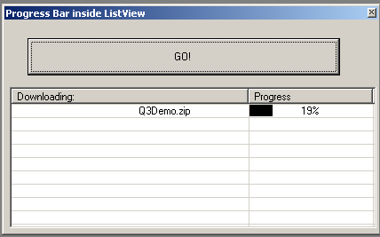 I started to make a Download manager and wanted a progress bar inside of a report list like napster. So here it is, the incomplete version. I guess i'll post a improved version with resizing the progress bar. And for some reason it adds a blank picture to the first item. i dunno so please help.