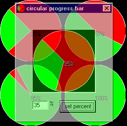 this is a circular progress bar.. even though it is not a bar. you can input a percent, and it will make the "progress" accordingly. it is heavily annotated. it uses the api calls textout, extfloodfill, ellipse, and pie. perhaps the next update will include the ability to have max and min values.