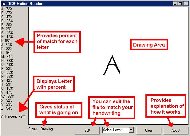 THis is my second program that can read. Its alot faster because it uses a completely different way to reconginze the letters. It also can be trained to your own hand writing. It uses the mouse movement instead of the pixels. The other program is at