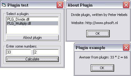The example plugins are written in Visual C++ and the plugin execute code is written in Visual Basic, this because it's impossible to call functions from within Visual Basic compiled dll's with this method.