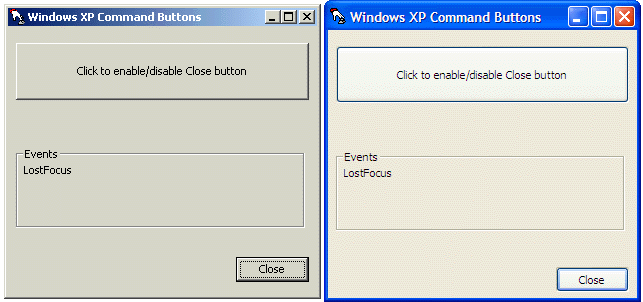 Did you know that VB 5/6 applications will not render their controls with the new visual themes under Windows XP? Obviously, this is not good. This is the solution to this problem. This creates a REAL themed button under Windows XP by calling the Theme APIs, all wrapped up into an easy to use control. All you have to do is drop this control in your forms in place of the regular command button. Plus, as an added bonus, this control is completely backwards compatible! If the OS that your program is running on does not support Themes (or if they are disabled), this control simply displays the standard command button, without any extra work by you. This will give your applications a truely professional touch!
