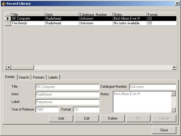 I wrote this app because I was looking for a simple way to store my Records and CD's in a database, so here it is. Hope you like it! Any comments are welcome off course.