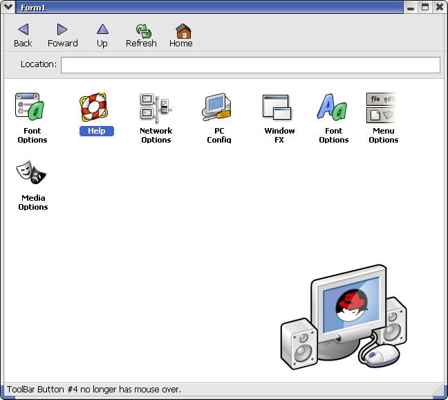 I wrote this to use along with my RedHat shell. It isnt quite done yet. Ive basicly subclassed everything with OnMouseOver and OnMouseLeave abilities. The form will resize without a Timer, API only. Doesnt seem to respond well with slower machine when resizing. Tell me what you think. This program has no purpose, just basicly EyeCandy.