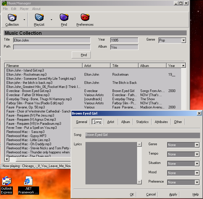Simply the biggest and best mp3 / media player with source code on the web. Recurisive search on the disk, reads / writes m3u files, retrieves tags, CDDB support, powerful find feature, Save custom playlists, Parameters on startup, song properties with more than 60 tags, soon a CD Write support. This program is always under construction so please check it out...