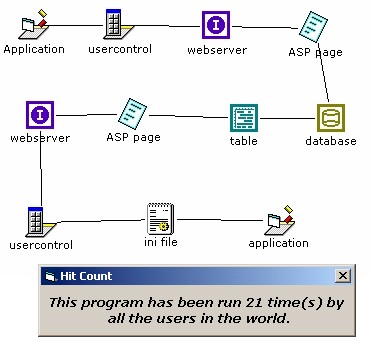 Just wanted to stab at this contest...I know a lot more can be added to this to make it more...complex yet fun...but I am at work and this is what I could through together during lunch. This program will just tell you the number of times the program was ran by using a custom control to access a ASP page on an external website which connects to a database to read the hit count then the ASP formats the results in INI format then the custom control saves that dowloaded ASP page to an INI file on the users hard drive then uses simple API calls tor read the value and display it. Just wanted to start of the contest with a little something that uses the web as well.