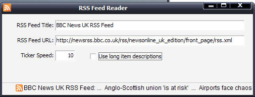 This is a quick example of implementing an RSS Feed reader on a 'ticker' style message on your applications. The code's commented and easy to understand. You can do this easier in VS .NET (or by using a Marquee control in a WebBrowser), but I thought it might be neat (and useful) to do it in vanilla VB using the MSXML library.