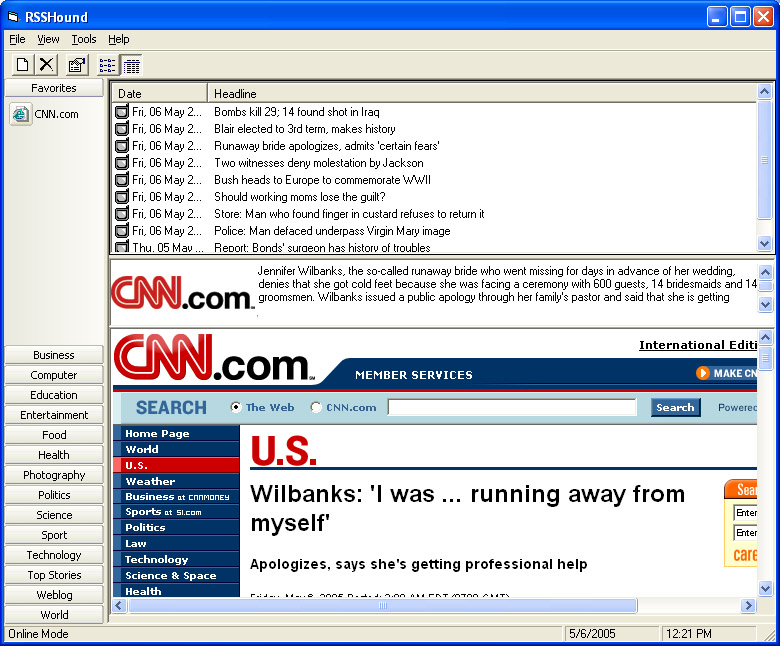 This is a RSS, XML, and ATOM news reader written in VB6.0 that utilizes a MsAccess 2000 db to manage subsriptions and viewed documents. There are more features that will be added in the future. This program also uses MSXML4.0 and the outlookbar posted here on VBC.