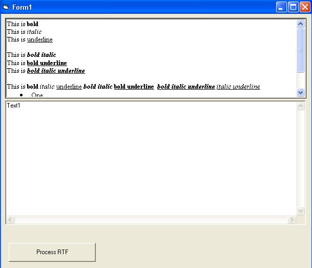 This code is well commented so it should be easy to follow. It should also be easy for someone to take this code as a starting off point, and make a full RTF to HTML converter.