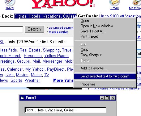 Adds an option to Internet Explorer Pop Menu, Gets selected text, and sends it to your program.