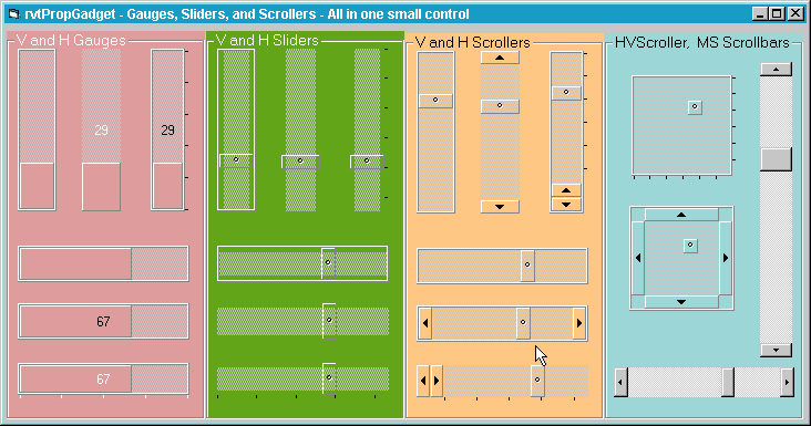Multiple Slider, Scroller controls in one OCX. Now Mousewheel support has been added, in addition to MS properties so that it can be used as a drop-in replacement.