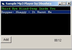 Shows you how to use the Common Dialog Control and Microsoft Media Player control to select and play mp3's. Works in the sort of manner as WinAmp, also puts the time elapsed in 00:00 format.