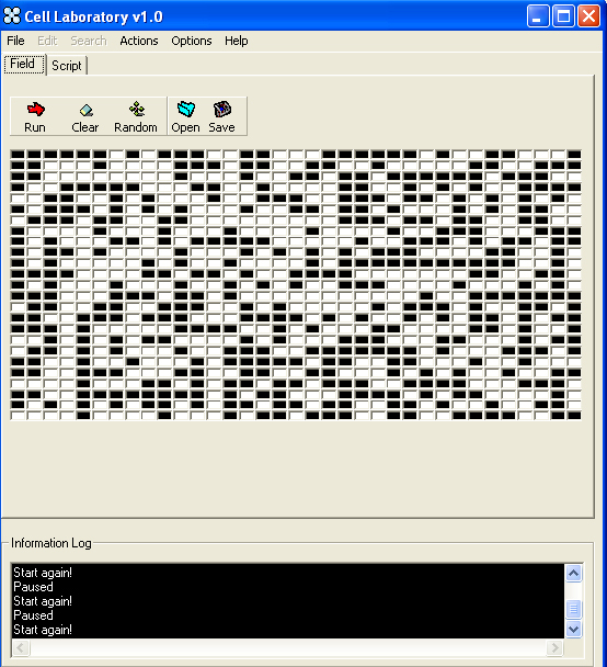 This is the source code of the Program CellLab. The program is an experimentation toolkit for a 2D cellular automata. Cell Laboratory basically separates the rules and the field where action is happening. It offers customizable rule and field system. It means, a user is able to run the cellular automata using any of him custom rule. This program offers Save/Open functionality for both rules and field.