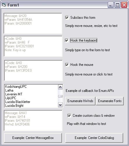 Hooks END safe now, added Paul's CDECL class to project so we don't lose that one either. Continuing on where Paul Caton left off. Paul has moved on from VB and his thunks are too good to let die. The attached contains a complete revamping of his subclassing thunks and significant enhancements to other thunks. The subclassing thunks, I believe are now 100% IDE-safe. I have even placed END statements inside of the subclass procedure and IDE did not die. The usercontrol (UC) crashes occurring when subclassing parent by multiple UCs is now history too. See the top remarks in cSelfSubHookCallBk_Template for overview. The assembly code is provided in .ASM files and can be opened with notepad. 18Jul07: Minor tweak in subclass.asm to attempt crash on compiled app when END executed. 21Jul07: Believe hook thunks now 100% END safe, added CDECL class allowing one to call C++ APIs or ASM thunks. Workaround for making Hook thunks more END-safe is commented in remarks at top of Template class.
