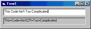 Used by VB applications that want to lightly (without any additional project references) transform unsafe characters into web-friendly URL Encoded text.