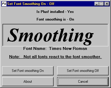 No comments have been posted about Set Font Smoothing On/Off. Why not be the first to post a comment about Set Font Smoothing On/Off.