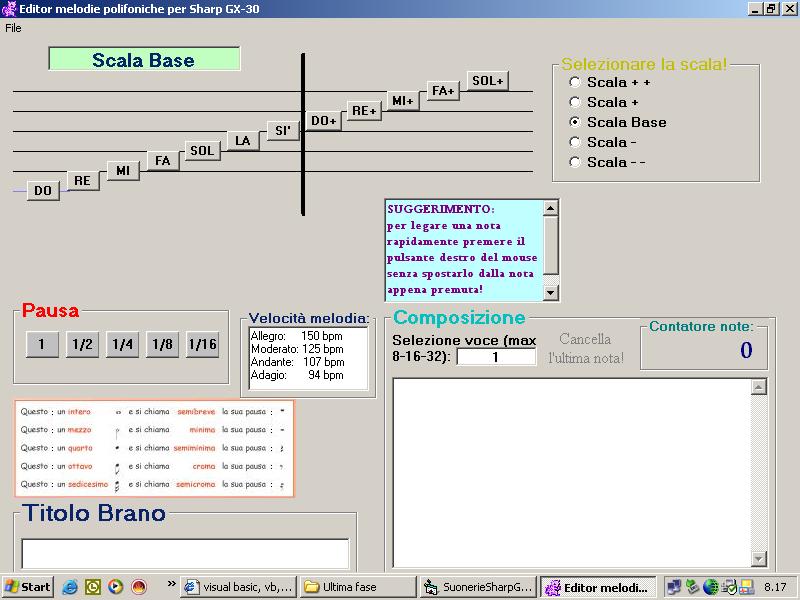 Sorry if I'm Italian and i don't think you really appreciate my work cause the words is in my language.. But I know that there is some thing that beginners can find helpful. I don't submit this in english version only for the reason that I think most of the people here don't know this cellular! I'm wrong?? But if you want you can adapt code for any type of pholifonic cell. Is there anyone that is able to make it professional by put in all the music for the notes??! This is my first submission and I made it for my father and is new cell.Please be good with me.It's not simple study all by myself.I want to thanks everyone in this community for the good work and I appreciate most of the submissions where I found a lot of good things for my study!!! CIAO!!!