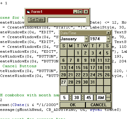 This is a DATE/TIME calendar dialog that is created using only native Windows API. (See ScreenShot) NO FORM NEEDED! It is used / called like any normal function.