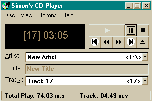 Simon' CD Player is a Microsoft Windows CD Player Clone. The CD playing functions are written using "mciSendString" (API only).