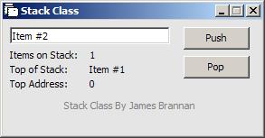 This class was created for the main purposes of having a controlled "stack" (like the stack, or memory heap in a computer). It will let you push items onto the stack, pop them off, and retrieve the number of items on the stack, and more. I'm pretty much a beginner here, so tell me what you think.