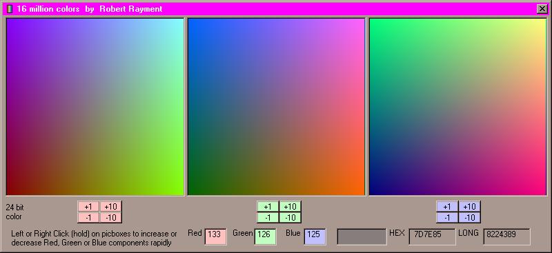 16 Million Colors DLL. Example of a straightforward DLL, written with NASM, to cycle through all possible colors quickly. For 24-bit color only. All source code included. Zip file 8.5KB.
