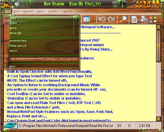 Professional NotePad! - Is a Cool 2007 Windows Notepad Clone with the ability to change Themes... Professional Notepad Uses WindowBlinds Technology for the Skinning... NOTE: A Third Party ActiveX Control is Required... Uses DirectSkin For The ActiveX Control https://www.stardock.com