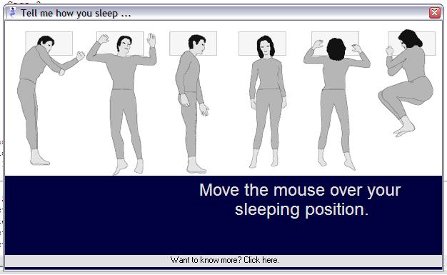Tell me how you sleep and I will tell you who you are A scientist claims to have discovered a direct link between people's favourite sleeping position and their personality. Here's how to find out for yourself. Zip 36KB - Paul Turcksin