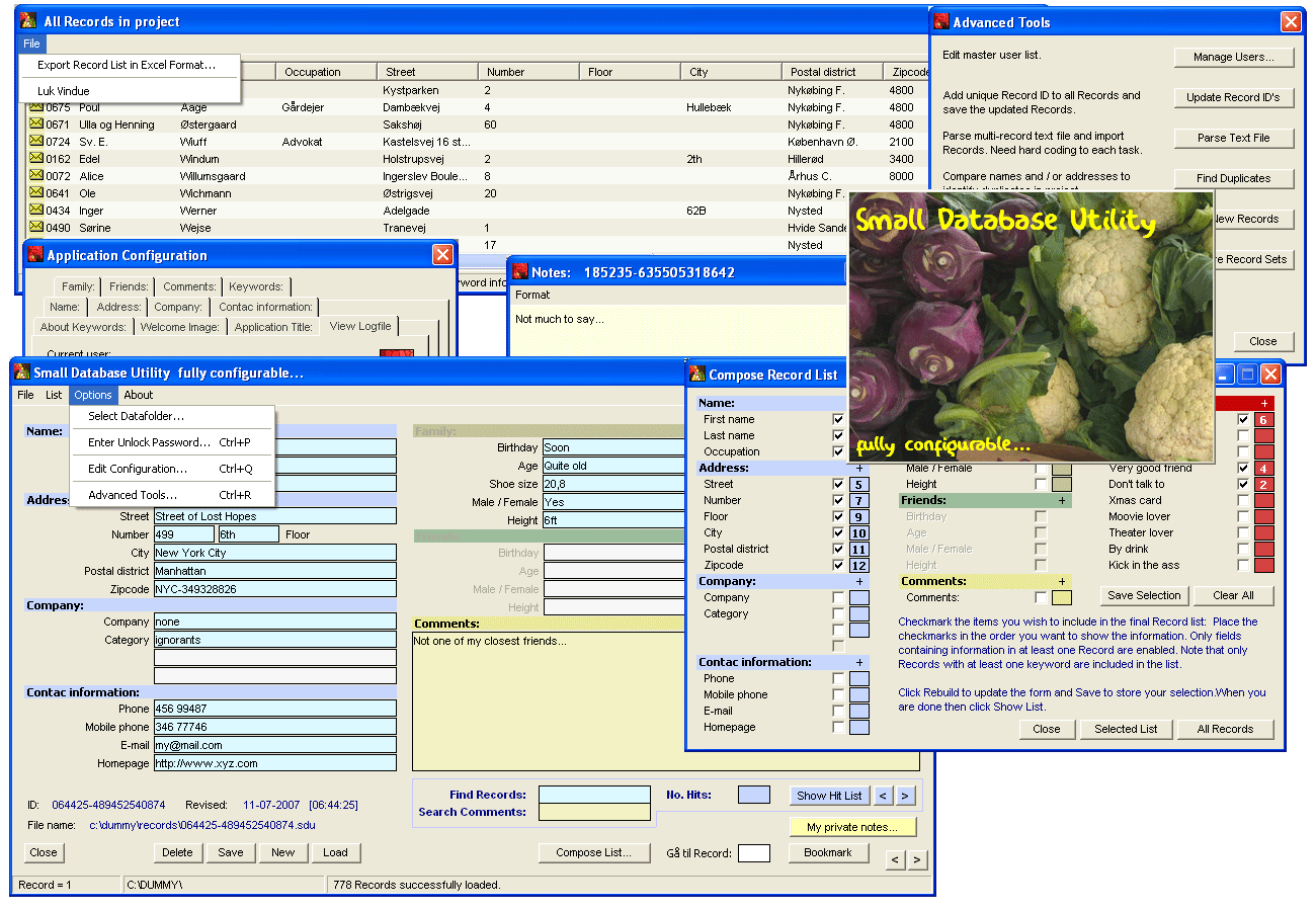 Since the first time the Small Database Utility code was submitted to PlanetSource a large number of modifications, corrections and additions to the code has been carried out in response to input from a number of users. Some of the improvements are listed here:
