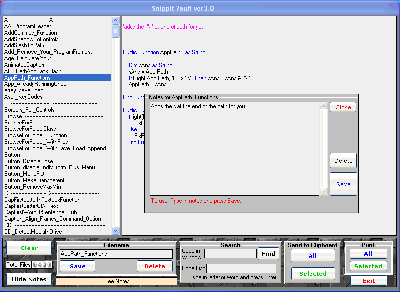 Use it to store code.You can add notes,do word or title searchs and send to clipboard.Does not use a database, to keep it simple.Hope you find it useful.