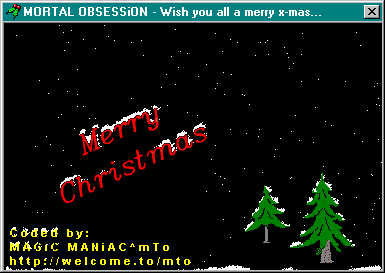 This simulate a snow fall with layout designed for christmas, Include with funny sounds. The snow falls on the ground, text and trees and even falls of the snow, text and trees. It's a very good simulation I think. If you can do it better then proof it! Send your snow simulation to me. Now check this code, and vote it on www.vbcoders.com for free-use without any credit in your application...