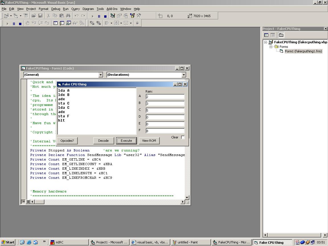 This is a small little app that simulates the lowest level of programming - i.e. directly manipulating the memory and registers etc. It will take your assembly language code, convert it to machine code and then store it in the software ROM. When you want to execute the code it will fetch it from the software rom and then execute it with the software CPU. Its not wildly advanced or powerful, but its quite good fun and interesting if you like this kind of thing!