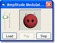 Amplitude modulation is displayed by use of a Slider Active-X Control, and by displaying a sequence of images whose image reflects the current amplitutde of the sample being processed.
