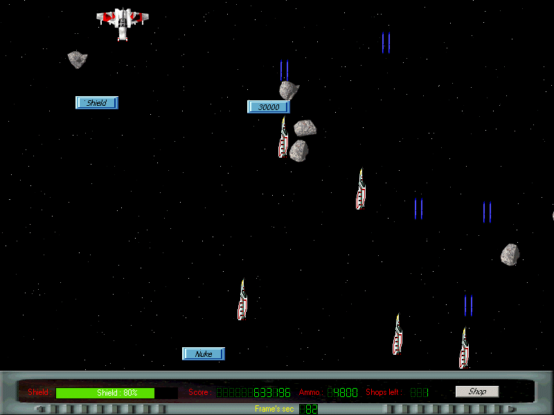 This is a game called spaceshooter. This was my frist game it has flip stereo, music, a shop to buy and upgrade weapons. After download unpack and read the readme.txt. Requires DirectX 7