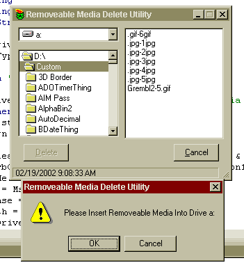 Have you ever deleted a file from a floppy drive by mistake and were frustrated that you could not retrieve it from the recycle bin cause it was not there. Windows does not allow deleting to recycle bin from removeable media. This utility will copy the file from floppy to a restore folder then delete to recycle bin and remove from floppy....Now it is gone from the floppy but is in the recycle bin....Please only constructive comments. I am shareing something that may help someone as it did me.