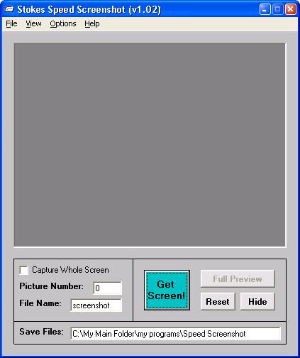 This program is designed so that anybody can take alot of screenshots really fast! Taking screenshots is done either by clicking the "Get Screen" button on the main, or for even faster and better results, hide it in the tray and just keep double clicking the tray icon! Also has a hot key "Ctrl+G"! It will automatically save pics for you in the directory where u installed it. Enjoy! :)