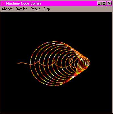 Spirals by Robert Rayment. Chris and I were looking at some spirals and I've animated a few for your pleasure (if you like that kind of thing!). See 'Tunnels & Things' for the techniques. Win98 only. Zip file 24 KB.