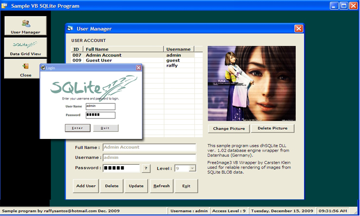 This is a sample program for SQLite database using dhRichClient3 db engine and FreeImage for