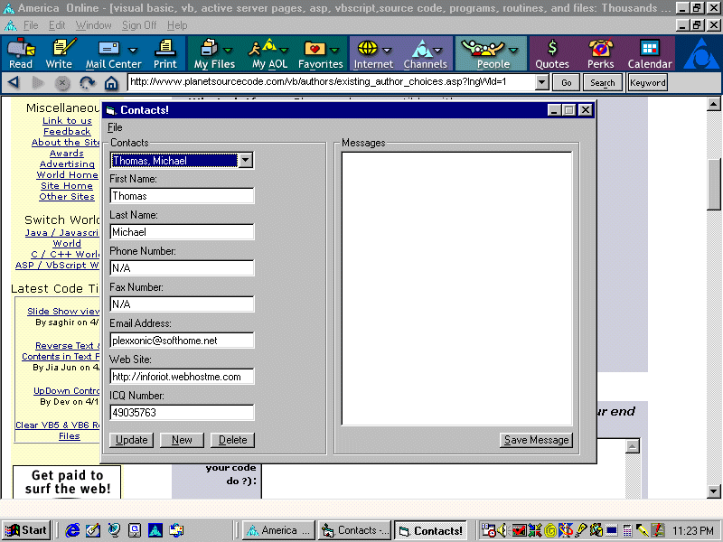 This is the first part of a network messaging system. This part is inteaded to show examples of connecting to a Microsoft Access Database and its related functions. It is highly commented. The next part will have the code to setup an "Inbox" feature that will check the database and see if you have any messages.