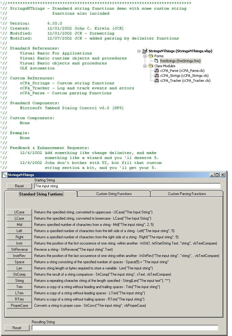 Demonstration project of standard Visual Basic string functions with some custom string functions also included.