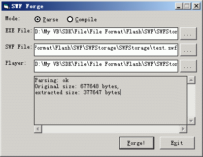 Extracting compiled flash(.exe) back to swf file. It is easy to do compile a swf file to a standalone exe without a separate palyer, but it depends on what version Flash you made the swf, because new features with new Flash. If new features used in swf, older player maybe play it correctly. So a workaround solution is to use the latest player:) And I included a small play game as resource and automatically extracted it to "Marshi Maro.exe" since VBC will automatically remove any file with PE headers, no matter what you name the file.