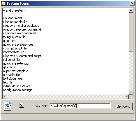 A simple class that accepts a filename or folder and grabs the system icons (large & small) and stores them internally for use by picture, listview, treeview. Provides a roster of all icons it currently has stored. Duplicates are automatically removed. Uses API (SHFILEINFO, WIN32_FIND_DATA, OleCreatePictureIndirect)