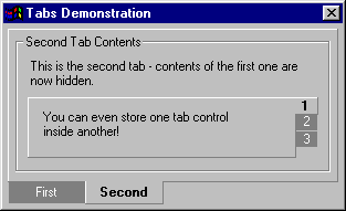 Using the TabStrip supplied by Microsoft, I soon realised I wasn't getting much value for the 1-Mb overhead needed by the common controls ActiveX. I also wanted the look and feel you see here, which I couldn't find elsewhere. I looked at other replacements for TabStrip, but they used quite a lot of resources (images, text boxes, etc) which all put a drain on Windows. This control just uses a totally empty control and draws on it. It's as simple as I could make it.