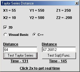 Download Taylor Series VS Sqr() Distance Testing (2D & 3D) (UPDATE) (35 KB)