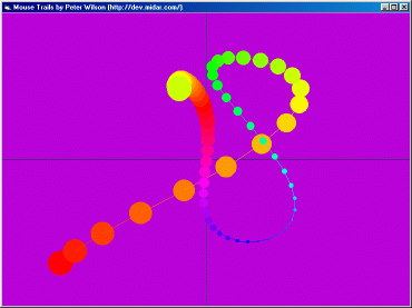 This modified version of Peter Wilson's "Technicolor Mouse Trails 2" uses a simple fps limiter to keep Autoredraw on a leash.