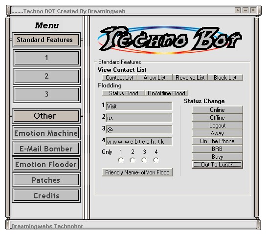 A simple messenger bot, cointains an email bomber, plenty of basic messenger enhancements features, a great flooder with pictures instead of random rubbish text. A great picture generator with saving facilities. Makes good use of registry and saving. Take a look and give us a vote if you like it ;).