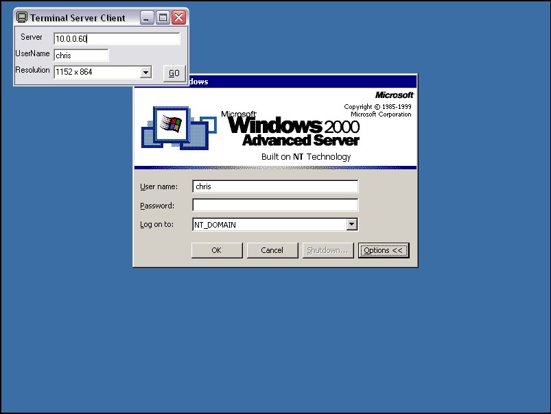 Connects to a remote Windows 2000/XP Terminal Server which runs on port 3389.