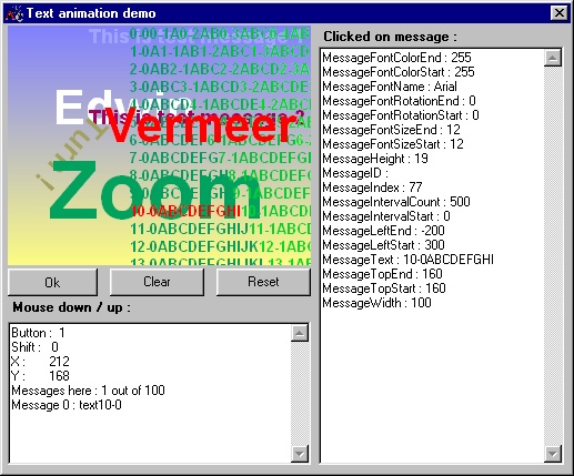 With this control you can flicker free animate multiple text lines. You can animate position, rotation, size and color. During the animation every text line is clickable.