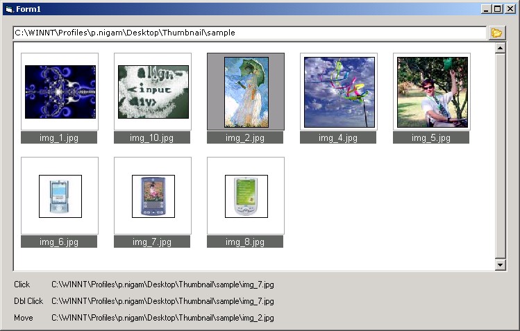 This is a thumbnail active-x control, like the one in windows explorer. Displays images, while maintaing the aspect ratio. Just specify the path of the folder containing the images...