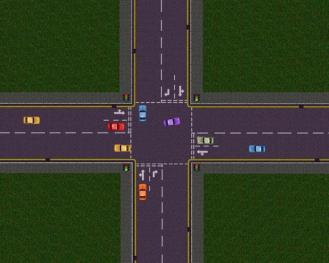 This is a project I was working on over a year ago, and never quite got finished. I'm uploading the best version I have, because it's a shame to let the work go to waste. The cars indicate, change lanes and start/stop at the traffic lights. Occasionally they will crash/overlap though, I could never quite fix that problem. I'll be honest, I'm in over my head with it now. Maybe someone else can finish it off. Good luck!