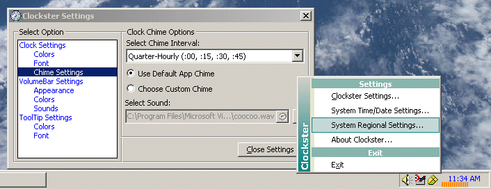 System tray clock with a twist. I always thought it was crazy to have to double-click the tray icon to launch the mixer app just so you can adjust the volume. Since the clock is not doing a helluva lot more than wasting screen real estate, I added the ability to adjust the master volume directly from the clock window. In other words, direct access. Nothing earth-shattering here, I know, but I just wanted to solve something that nags me. Now I can double-click the volume bar at the bottom of the clock and mute the sound instantly. Clicking and dragging the mouse over the volume bar will increment/decrement the volume depending upon the direction you are going. You can also click anywhere in the area of the volume bar to set the volume level where you click. To get to the options window, double-click the clock area which is above the volume bar. The clock's fore and backcolors can be changed. Hopefully I can add more customizations and features later. To exit the clock toy, press Ctrl--> Shift --> and click on the clock at the same time. As with all my code lately, I piggy-backed from Carlos P.V.'s fader code and employ Paul Caton's WinSubHook2....I know there are a couple of minor issues and the ones I don't know about, I am sure I will hear about them. Comments and suggestions welcome! Just compile it and place a shortcut to the exe in your startup folder if you want direct access to your master volume. Enjoy and happy coding! ;-)