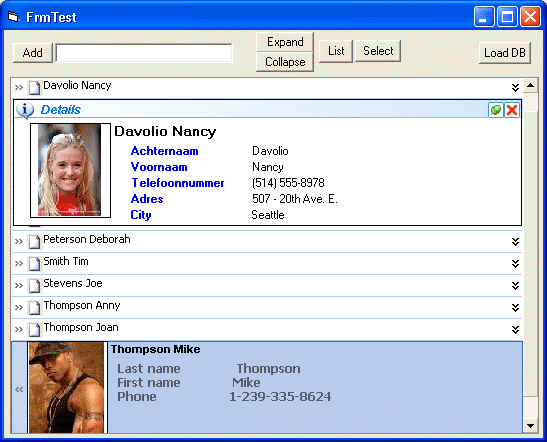 The TreeBook Control is designed to store information, (as example contacts). There is a picture storing feature available. It is possible to store practically any information. The data inside the viewing area has a tree-like structure.